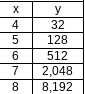 8.5 - (Double Jeopardy) Determine if the following is linear, exponential, or quadratic and state the equation.