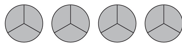 Laura and three friends share 3 bagels.  How much of a bagel does each friend get?