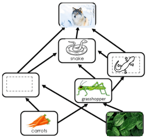 Grass is eaten by a deer. The deer is eaten by a wolf. This is an example of
