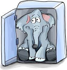 Abre a geladeira, coloca o elefante e fecha a geladeira.