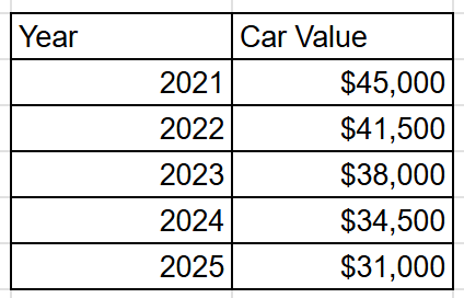 The rate of change is -3500, and the car is losing $3500 of value every year.