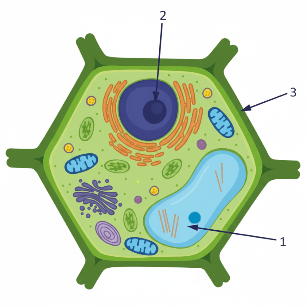 Which organelle contains the cell’s genetic material and controls cell functions? (Use the plant cell diagram labels.)