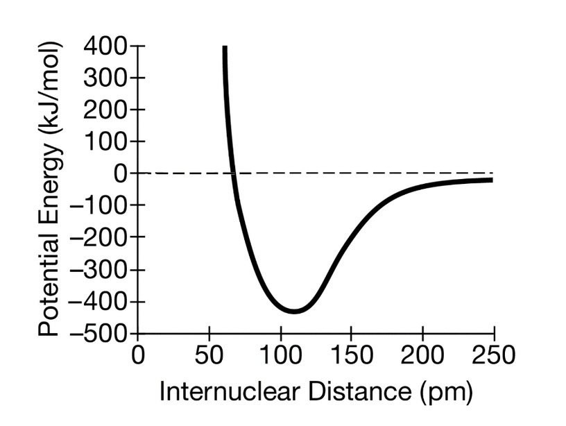 Draw what a potential energy (y-axis) versus internuclear distance (x-axis) graph might look like?
