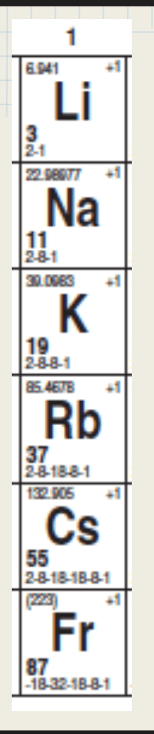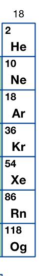 Elements with similar properties; group 1, 2, 17 and 18