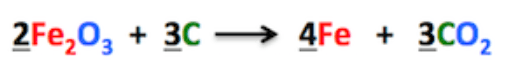 In this equation, it's the number of moles of carbon needed to react completely with 6 moles of iron III oxide (Fe2O3)