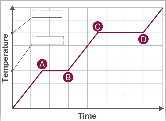 Thermal energy is being added to a pure substance. Which section shows vaporization?