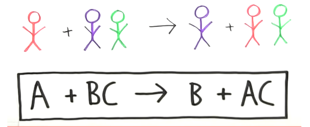 The type of reaction where the positive and negative ions in two compounds switch places.