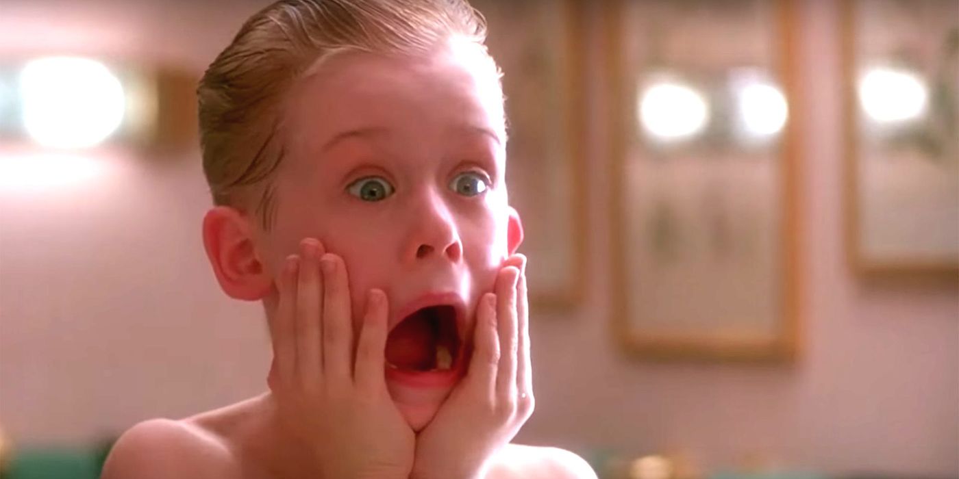 What does Kevin Mcallister put on his face in "Home Alone" that makes him scream?