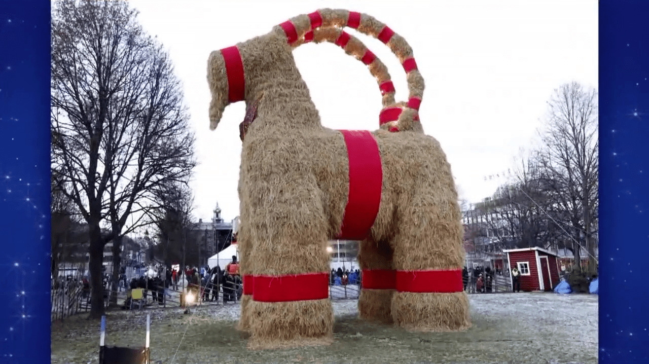 In Sweden, a Christmas straw one is traditional; here's the 42-foot, 4-ton example in Gävle
