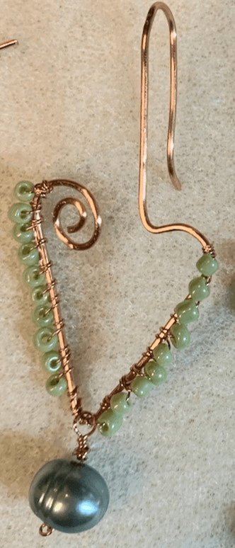 What materials did Laurie Eaton use to create her Heart Earrings at the February zoom mini teach?