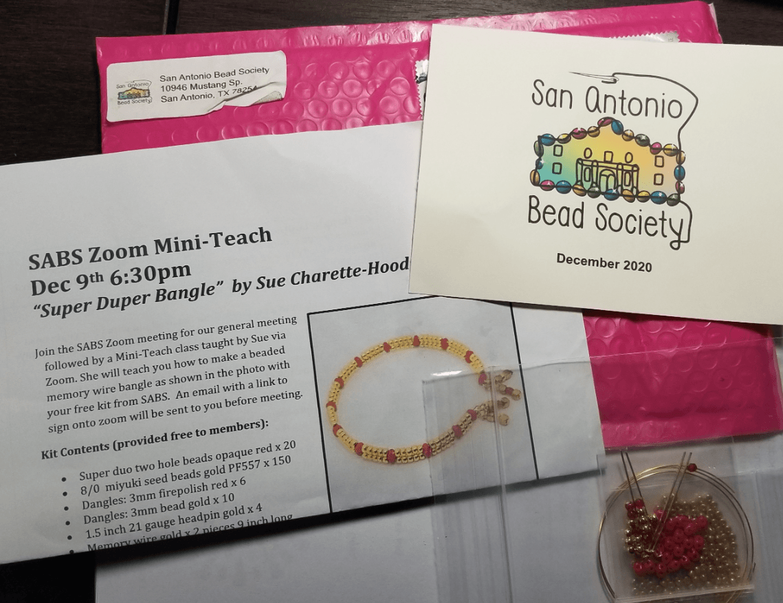 What is the annual SABS membership fee? (which includes all Mini Teach kits/instruction, door prizes, guest speakers, parties, discount at bead stores, etc.) DUE in January!!