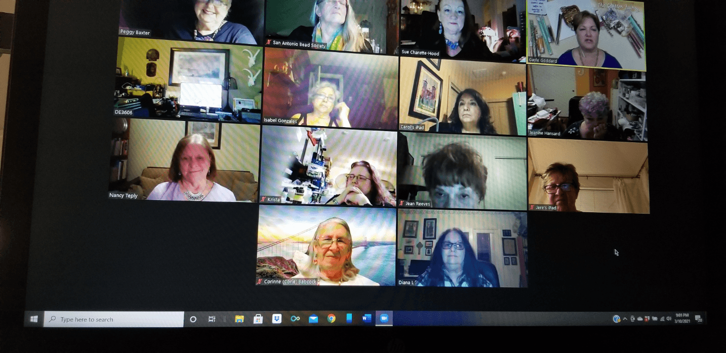 What zoom class taught bead embroidery basics in April? (by Sue Charette-Hood)