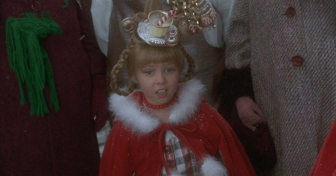 In Ron Howard's The Grinch, what is Cindy Lou Who wearing on her head at the Holiday Whobilation?