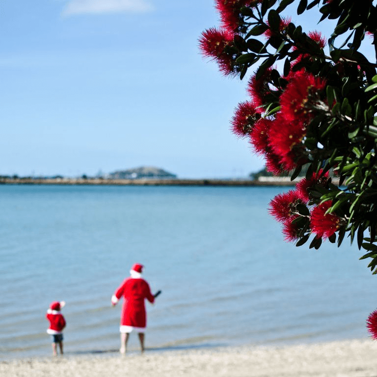 The New Christmas tree in this country is the Pohutukawa, a coastal species that blooms a bright-red color in December, providing shade during the sunny days as the people sing carols in both English and Maori.