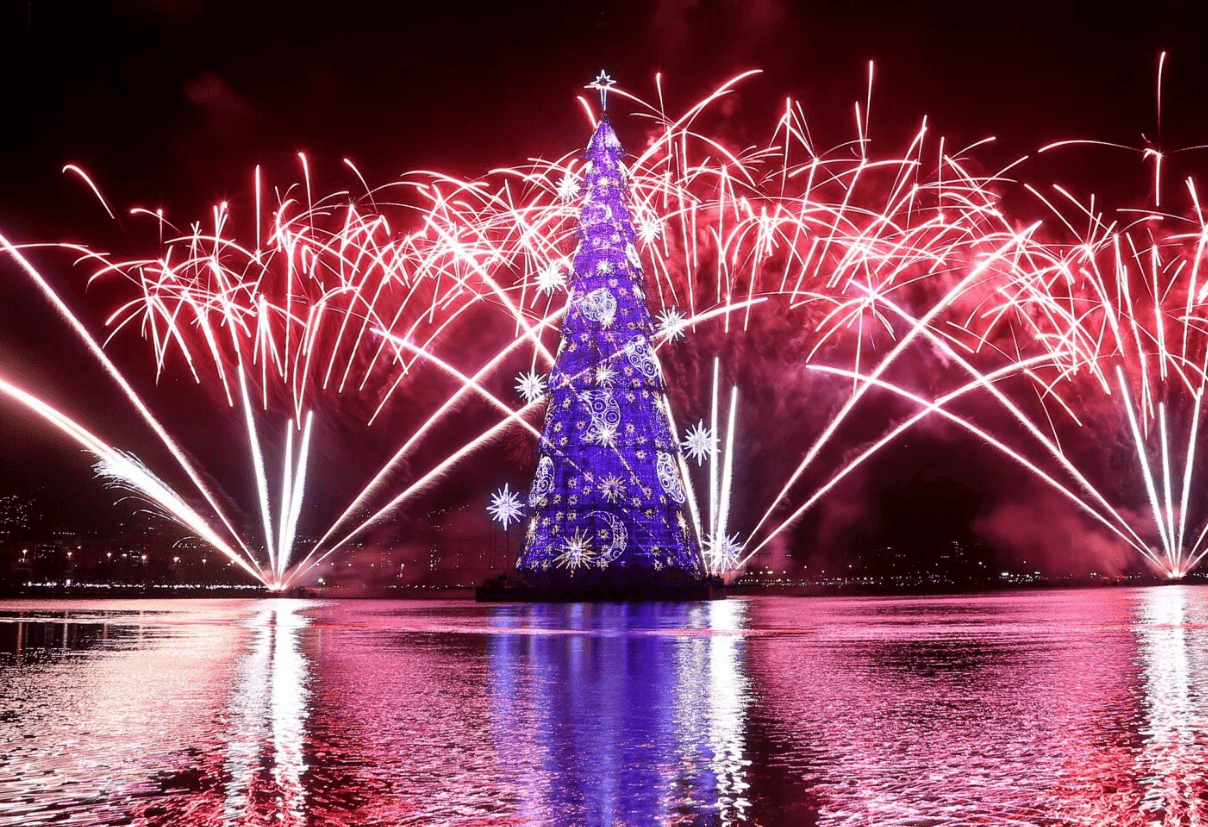 You can see a floating Christmas tree in the ocean, located next to the city of Rio de Janeiro, Brazil. And what is the capital of Brazil?