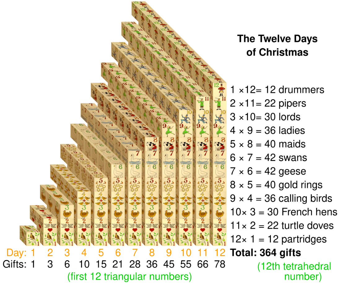 How many gifts in TOTAL were given in “The Twelve Days of Christmas” song?