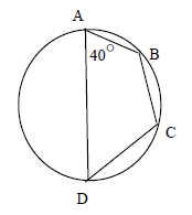 Calculate the measure of angle C in the inscribed quadrilateral.