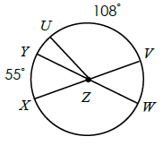 What is the measure of arc UXW?