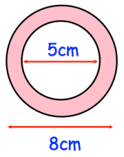 Large area - small area = 50.24 - 19.625 = 30.615 square cm