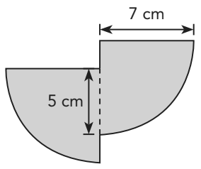3.14 times 7 times 7 = 153.86 / 2 = 76.93 square cm