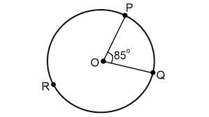 If a central angle is 85 degrees, what is the measure of the intercepted arc PQ ?