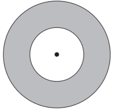 A pair of concentric circles is shown. The area of larger circle is 85.5 mm2. The radius of the smaller circle is 3.5 mm. What is the area of the shaded region?