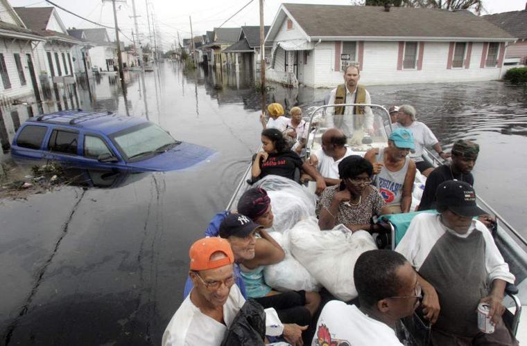 What caused the flooding in New Orleans when Katrina landed? (2 Factors)
