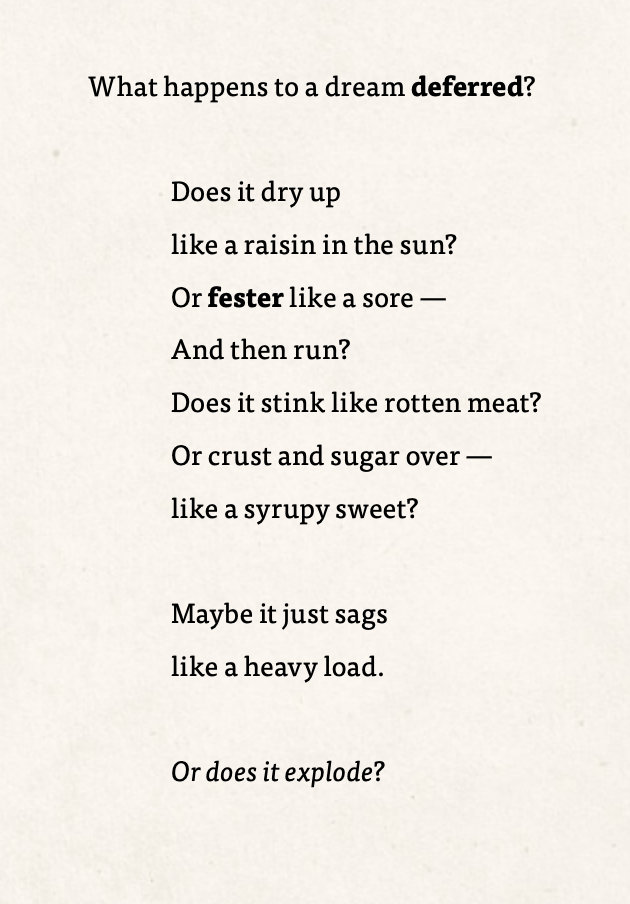 What does the simile "dry up like a raisin the in the sun" mean in the poem Harlem by Langston Hughes?