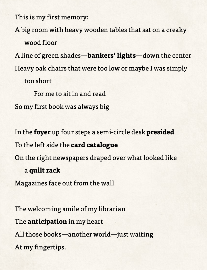 How does Nikki Giovanni feel about libraries and librarians? How do we know? Provide evidence from the poem.