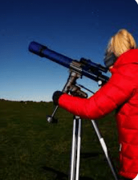The person in this image is using a ________. This tool helps us see distant objects, like stars and planets, by magnifying them.