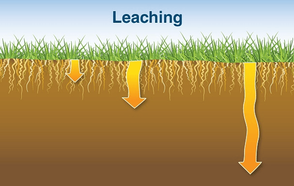 In the leaching process, minerals are moved into the _____ layers of soil.