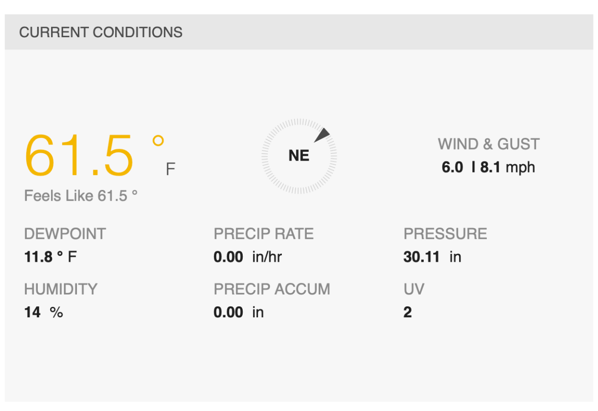 What is 14%, 6.0 mph, and 30.11 in?