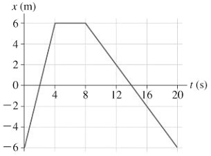 What is 15 to 24 seconds? (notice the slope is negative and the object started at +3 m so at about 24 s the object is at its starting location again)
