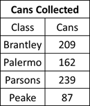 Four classes collected cans for the can food drive. Estimate how many cans were donated by the four classes. Round to the nearest hundred.