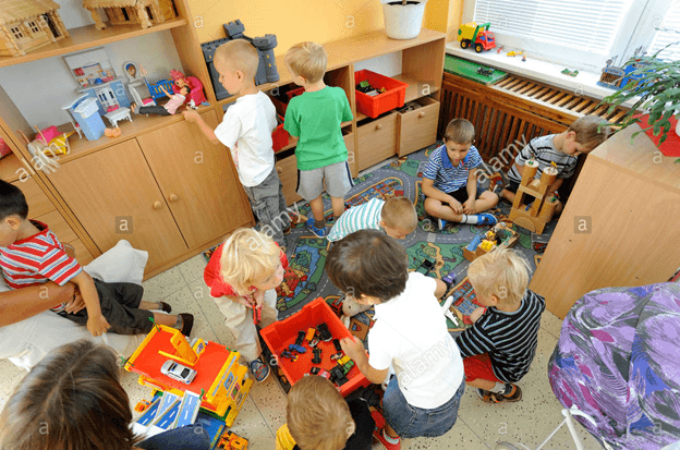 5.2 Atleast 5 interest areas are used, including a cozy area protected from active play" (p. 19 Room arrangement and learning)