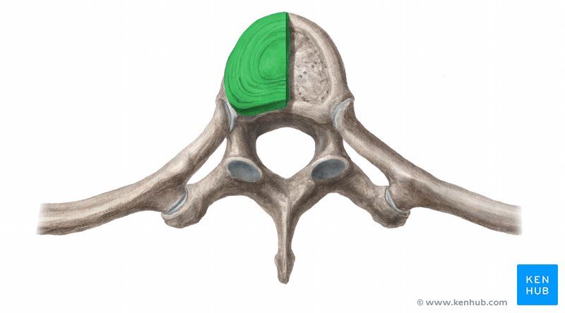 Atlas, axis, apofisis odontoides, apofisis espinosa, apofisis transversa, lamina