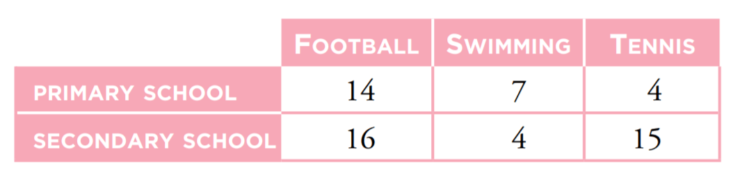 Calculate the probability that a student plays tennis given that the student is in secondary school.