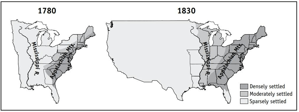 D. By 1830, American Indian attacks had prevented any settlement beyond the Appalachian Mountains.