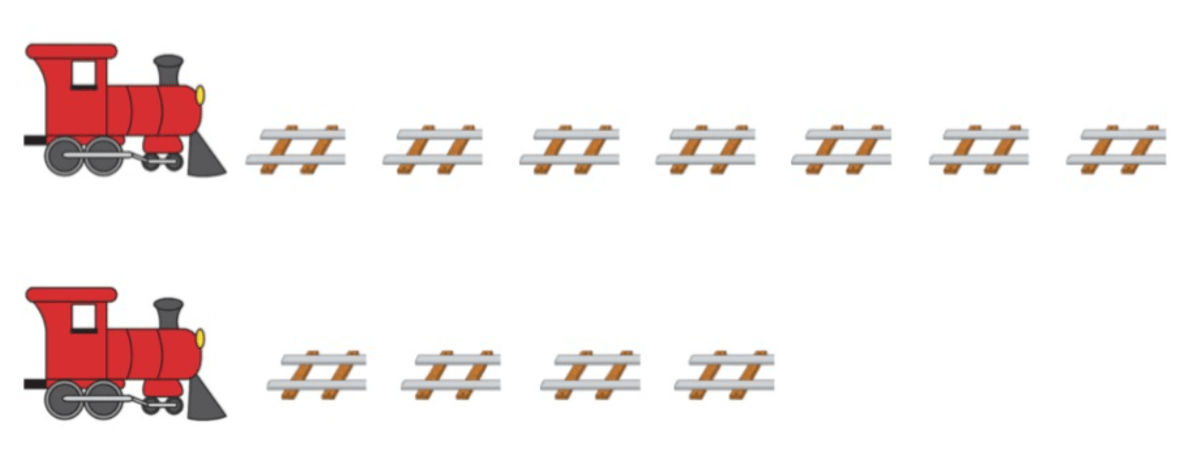 These trains are delivering mail across the United States. Write an equation to show the total number of train tracks the trains have to use to deliver the mail.