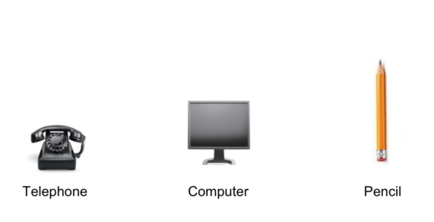 People use the objects below to communicate with each other. Think about the items in the picture and use what you know about them to answer the question.