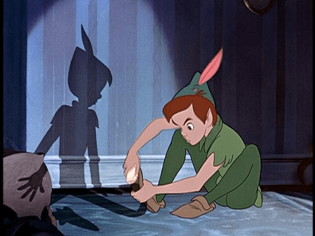 In Peter Pan, what does he lose in Wendy's bedroom?