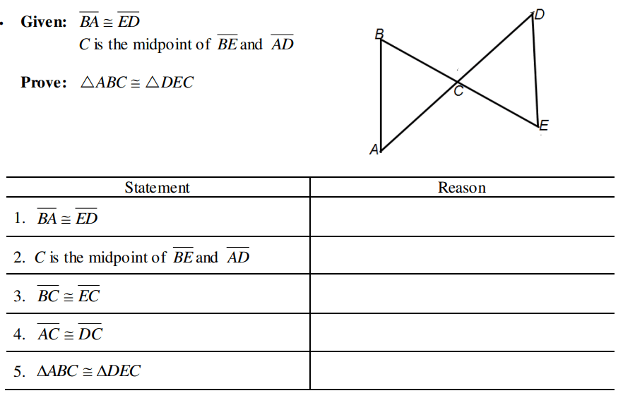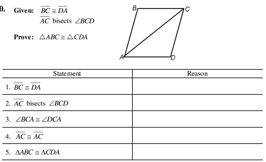 State the postulate or theorem that concludes that angle A and angle D are congruent.
