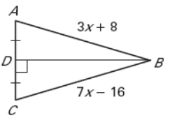 If ED is a perpendicular bisector of line AB, what two sides are congruent.