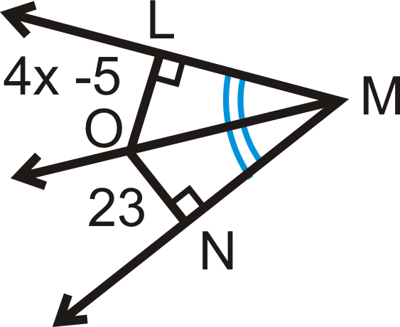 If OM is an angle bisector of angle LMN. What is the value of x.
