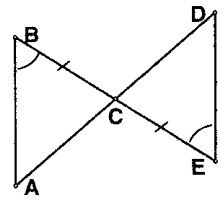 State the postulate or theorem that concludes angle ACB and angle DCE are congruent.