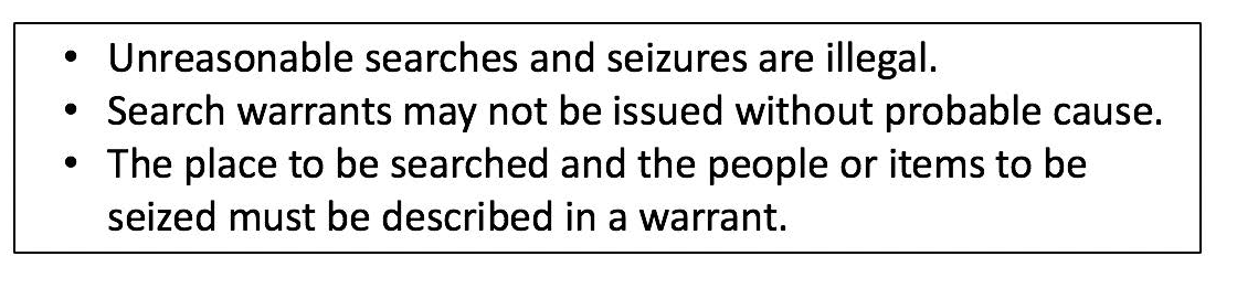 . . . and no warrants shall issue, but upon reasonable cause, supported by oath or affirmation, describing the place to be searched and person or things to be seized.  —Fourth Amendment