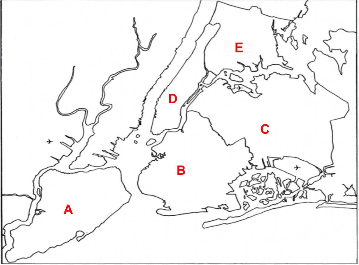Manhattan, Staten Island, Bronx, Brooklyn, Queens
