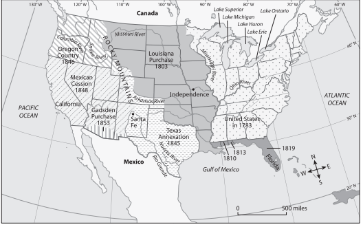 Which of the following were most responsible for expanding U.S. territory into Texas and areas west of the Rocky Mountains? Select TWO correct answers