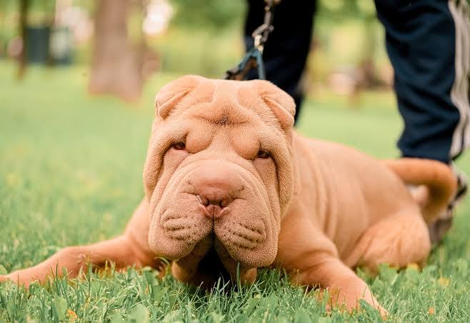 The Shar Pei, with its signature wrinkly skin, gets its name from the Chinese words “shā pí,” meaning sand skin, due to its rough coat.