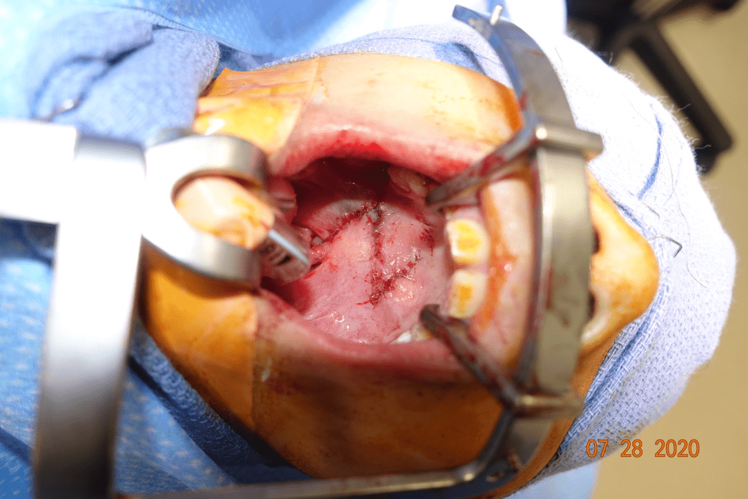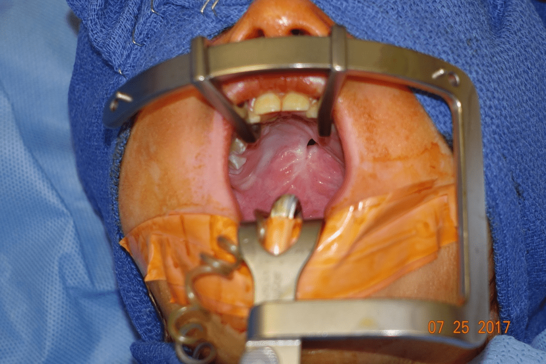 Hyperflexion of neck leads to hypoplasia of mandible, leads to superior displacement of the tongue with or without cleft palate, tongue overgrows the oral cavity leading to glossoptosis anteriorly and obstruction posteriorly.